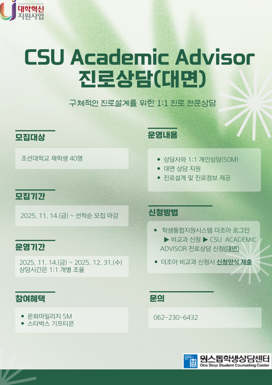 [원스톱학생상담센터] 2025년 Academic Advisor 활용 1:1 진로상담 안내
