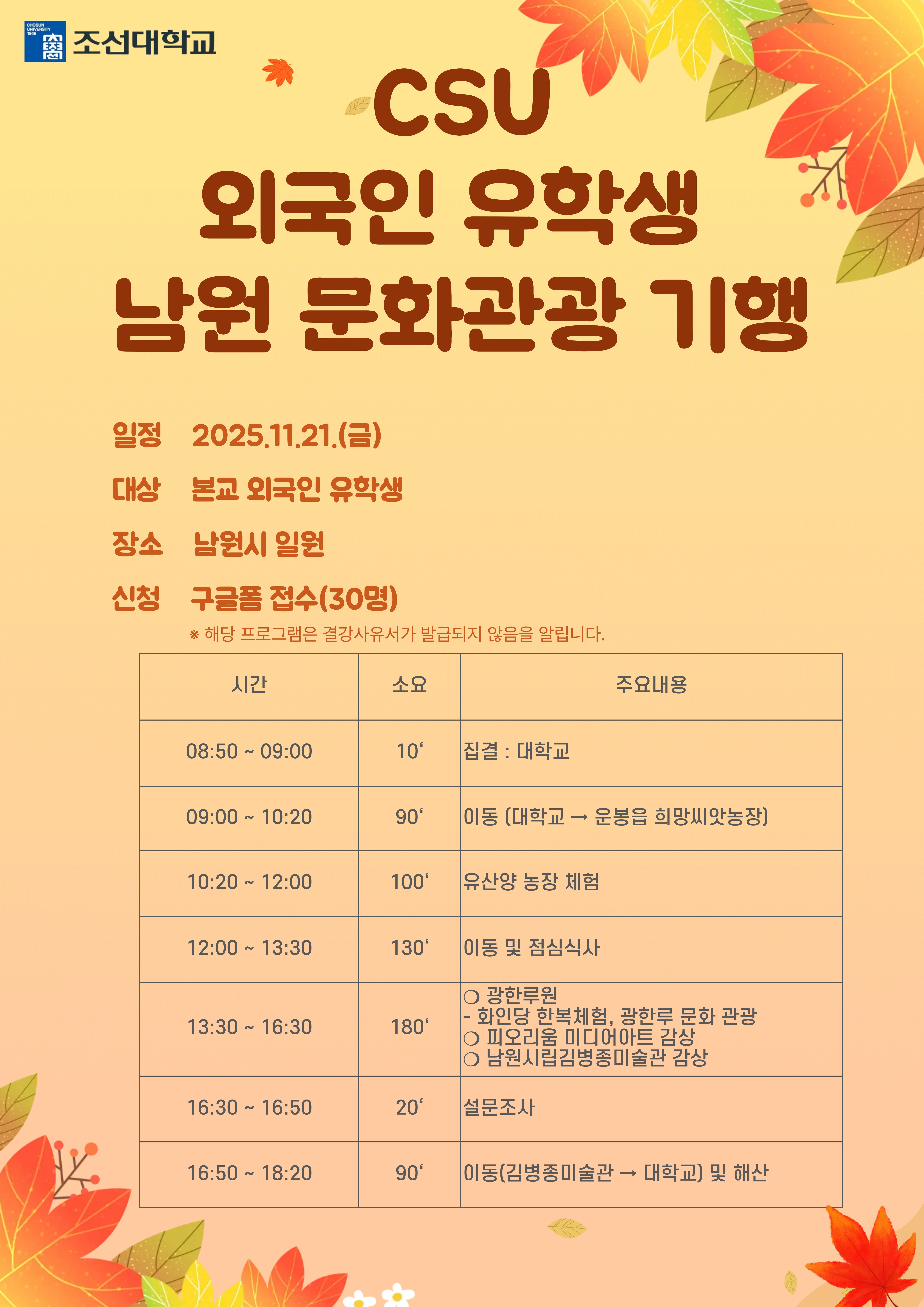 2025년도 CSU 외국인 유학생 남원 문화 관광 기행 참가자 명단 발표 List of Selected Participants for the 2025 CSU Namwon Cultural Trip