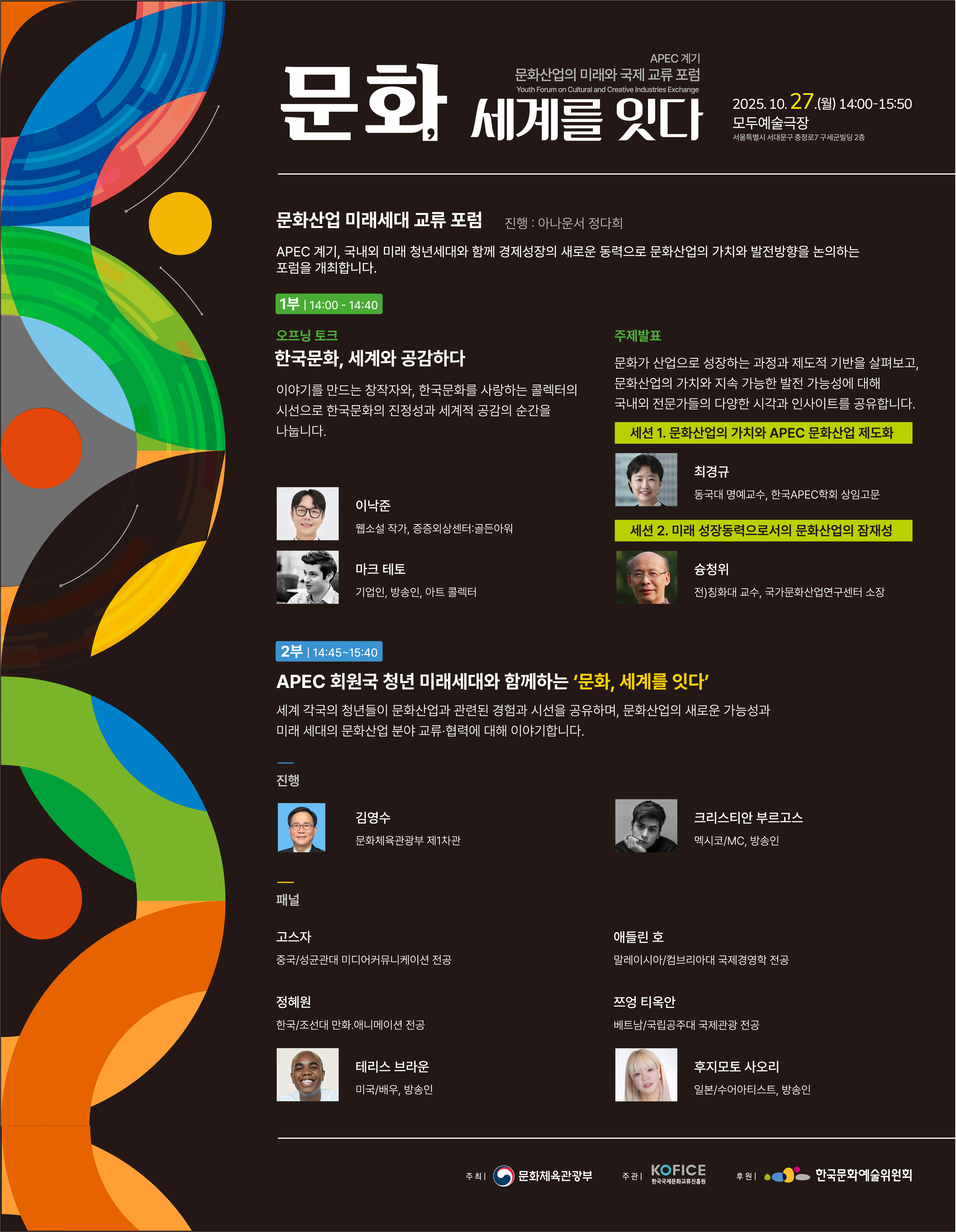 (홍보) APEC 계기 문화산업의 미래와 국제 교류 포럼 '문화, 세계를 잇다' 개최 안내