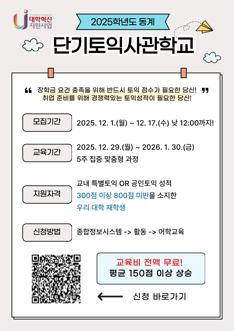 2025 동계 단기토익사관학교 안내(교육비 무료)