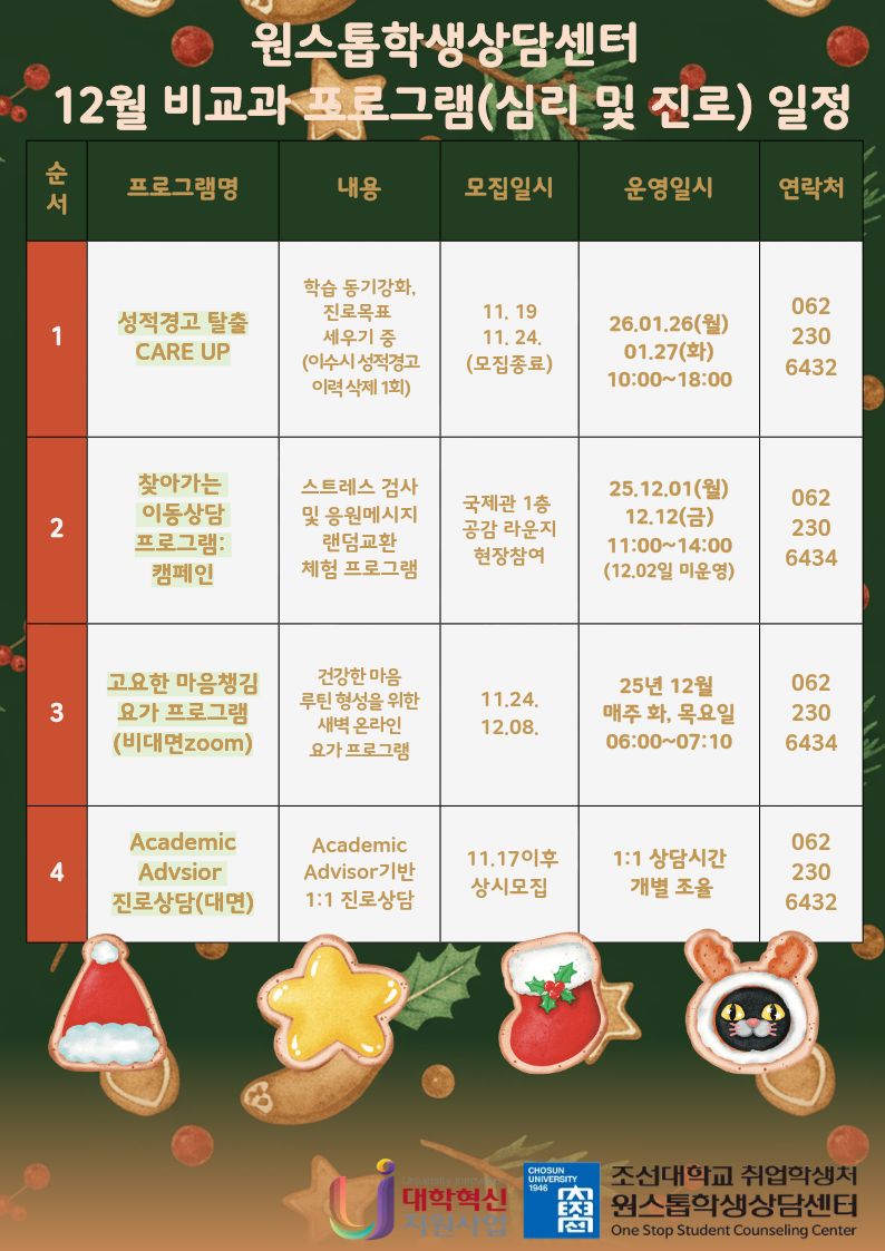 [원스톱학생상담센터] 2025 12월 심리상담・진로 비교과 프로그램 일정 안내
